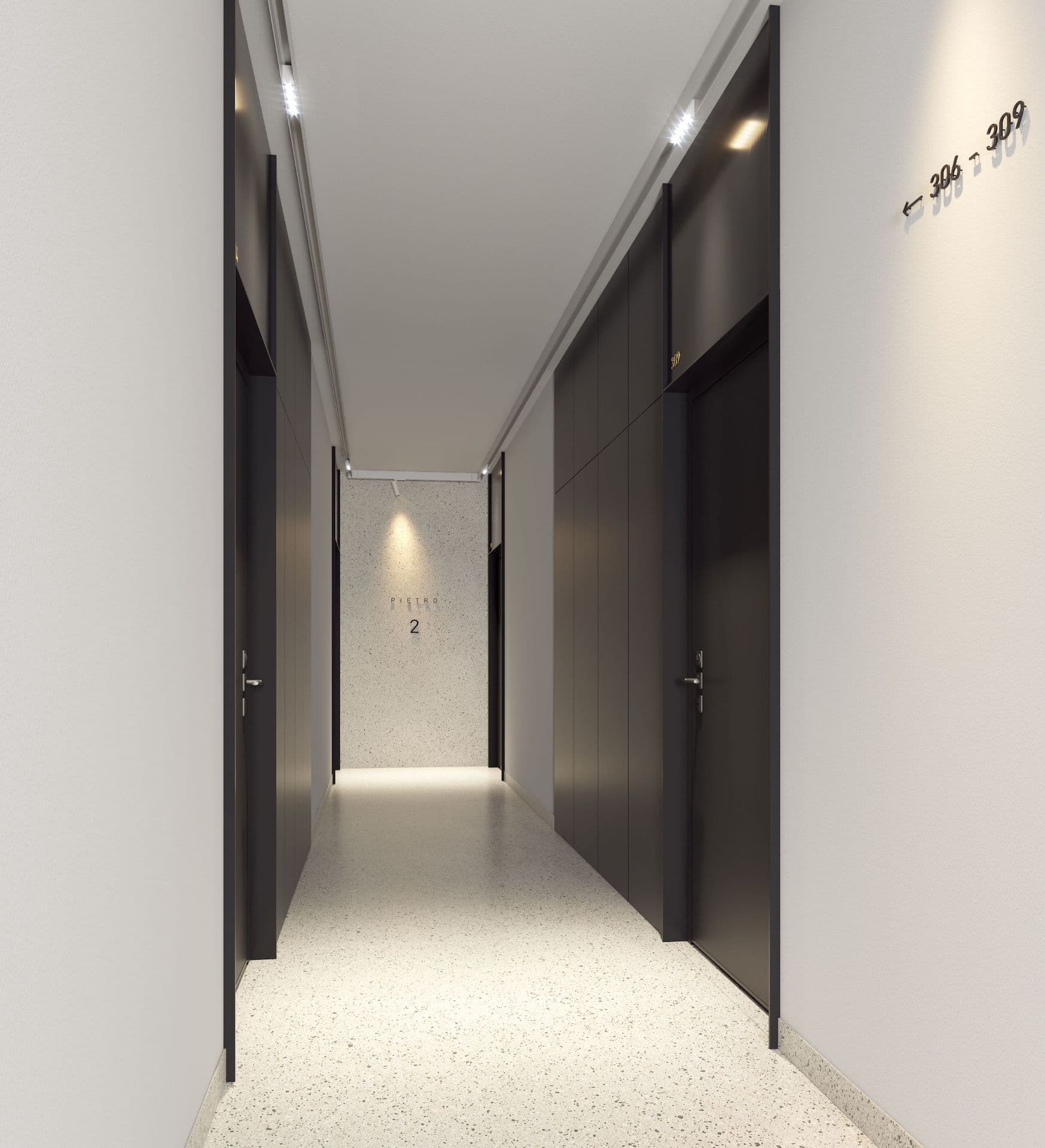 Zastosowanie szlachetnych materiałów (kamień, szkło, drewno) oraz dbałość o estetykę części wspólnych.