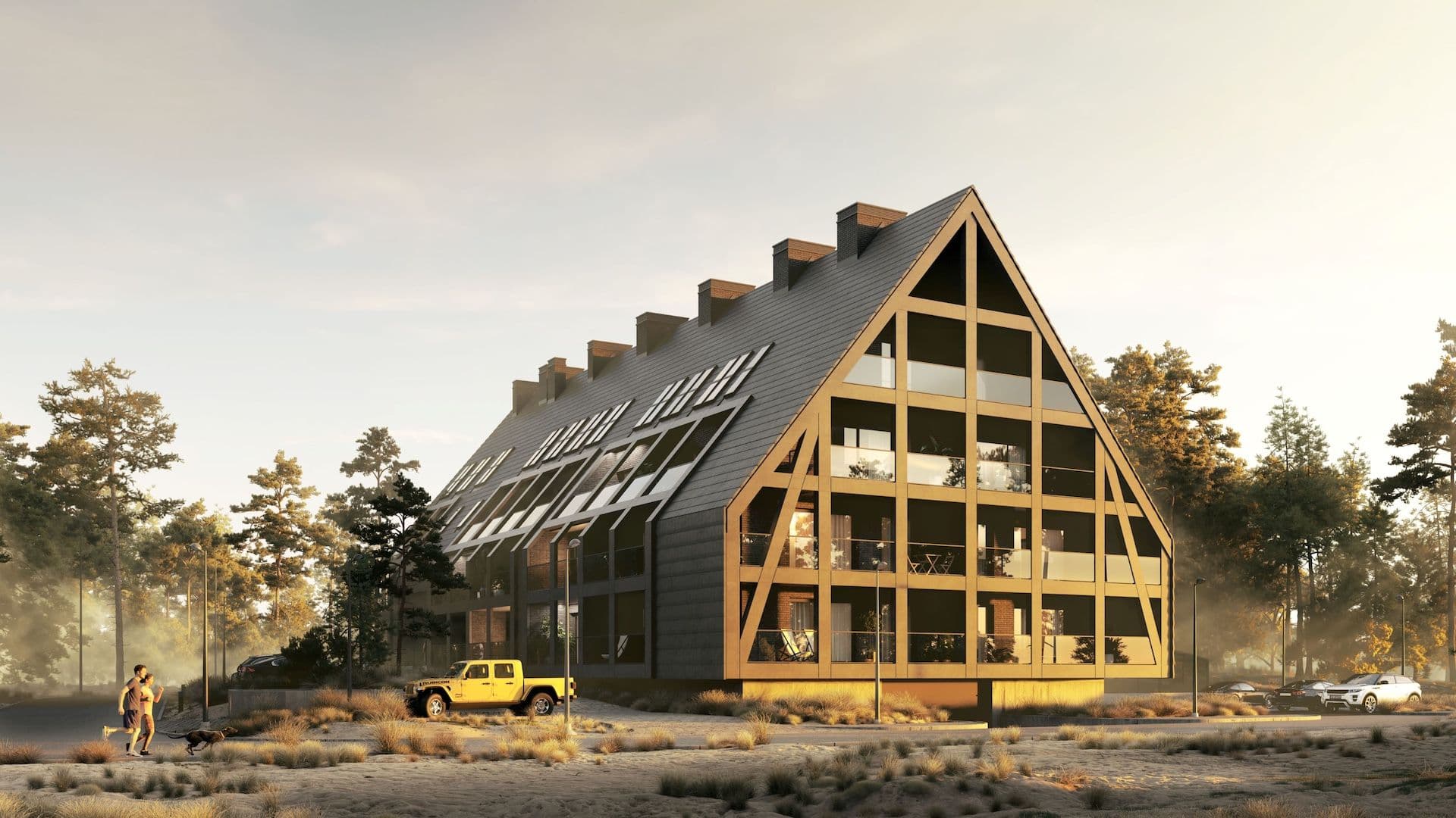 Nowoczesny design, który subtelnie nawiązuje do lokalnej tradycji kaszubskiej, łącząc elegancję z naturalnymi materiałami.