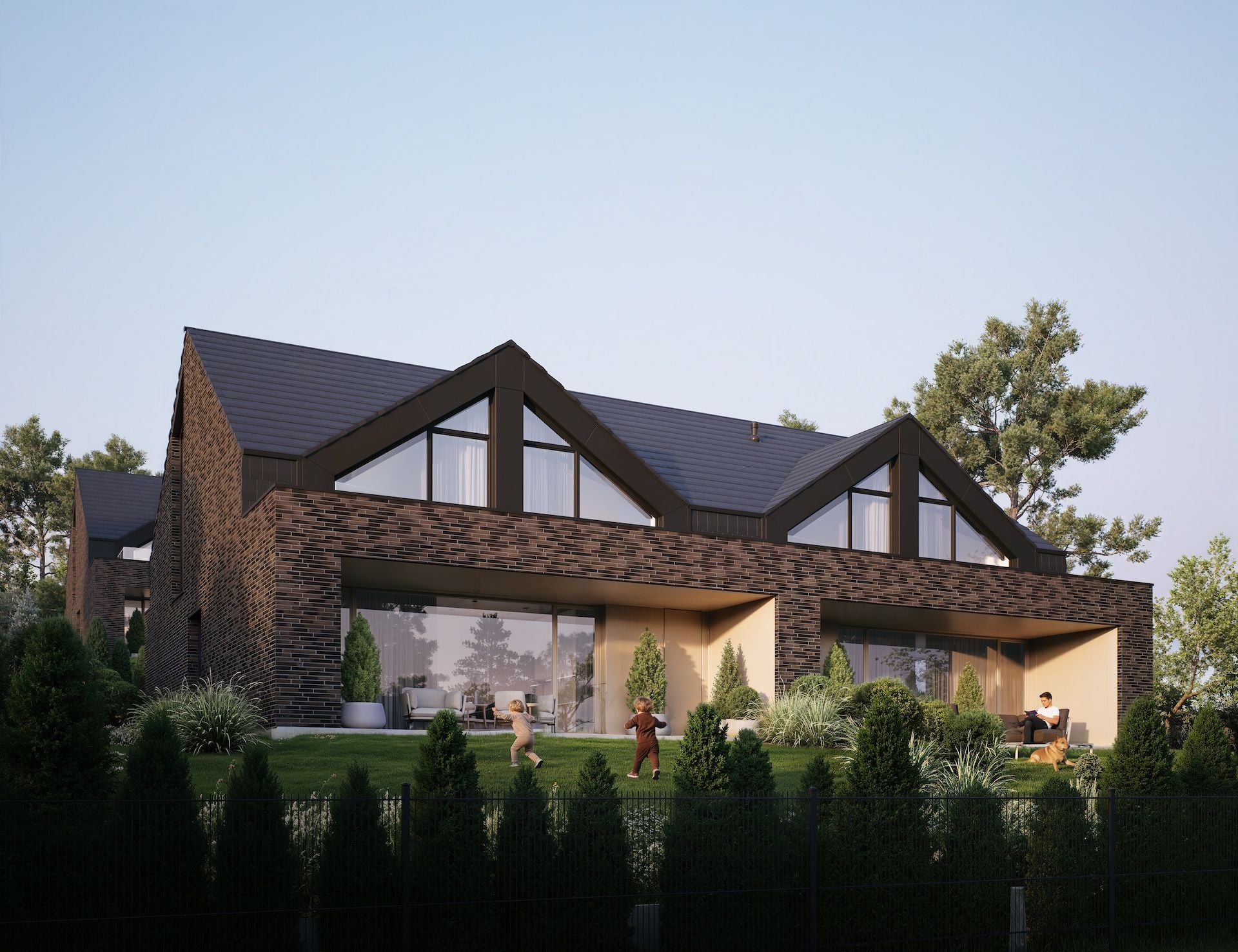 Każdy z lokali o imponującej powierzchni 180 m² charakteryzować będą wielkopowierzchniowe przeszklenia, które jeszcze bardziej będą łączyć wnętrza z otaczającym krajobrazem. Elewacje wykończone szlachetną cegłą nadają budynkom ponadczasowego charakteru i elegancji. Domy budowane są z wysokiej klasy materiałów, z zastosowaniem nowoczesnych rozwiązań technologicznych oraz energooszczędnych metod wykonania. Każdy z lokali posiadać będzie garaż wkomponowany w bryłę budynku oraz prywatny ogród na malowniczej działce – miejsce idealne do stworzenia swojej własnej, intymnej przestrzeni.
